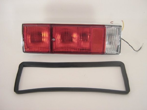 NEW - 1970, 1972 #54777-1976 REPLICA USA, LEFT REAR TAIL LAMP ASSEMBLY WITH RED TURN SIGNAL LENS 9921301, CENTER RED LENS 9921292, BACK UP LENS 9925726, LENS TO HOUSING GASKET 9921296, & HOUSING TO BODY GASKET 9921298.